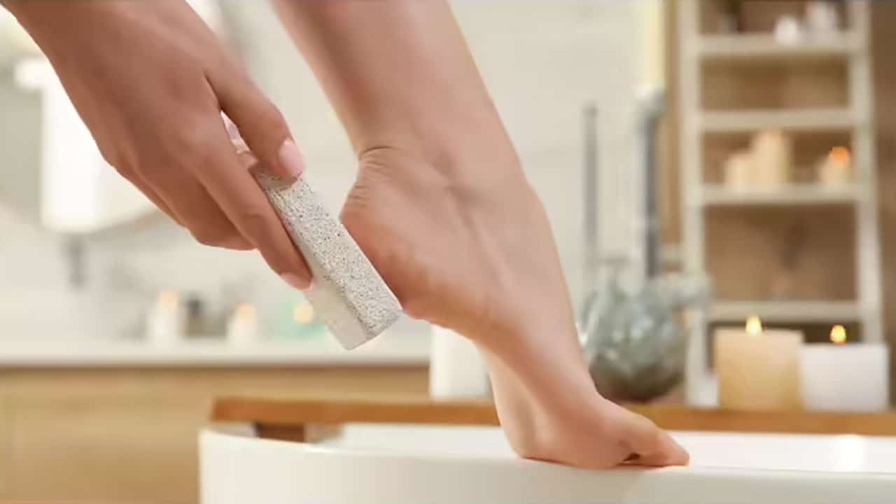 తర్వాత ప్యూమిస్ రాయితో స్క్రబ్ చేసి డెడ్ స్కిన్ తొలగించాలి.